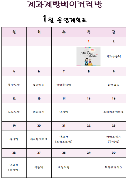 2026년 1월 베이커리 시간표