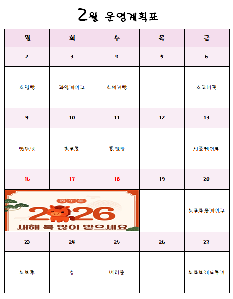 2월에 연휴도 있어서 메뉴가 많지 않네요ㅎㅎ